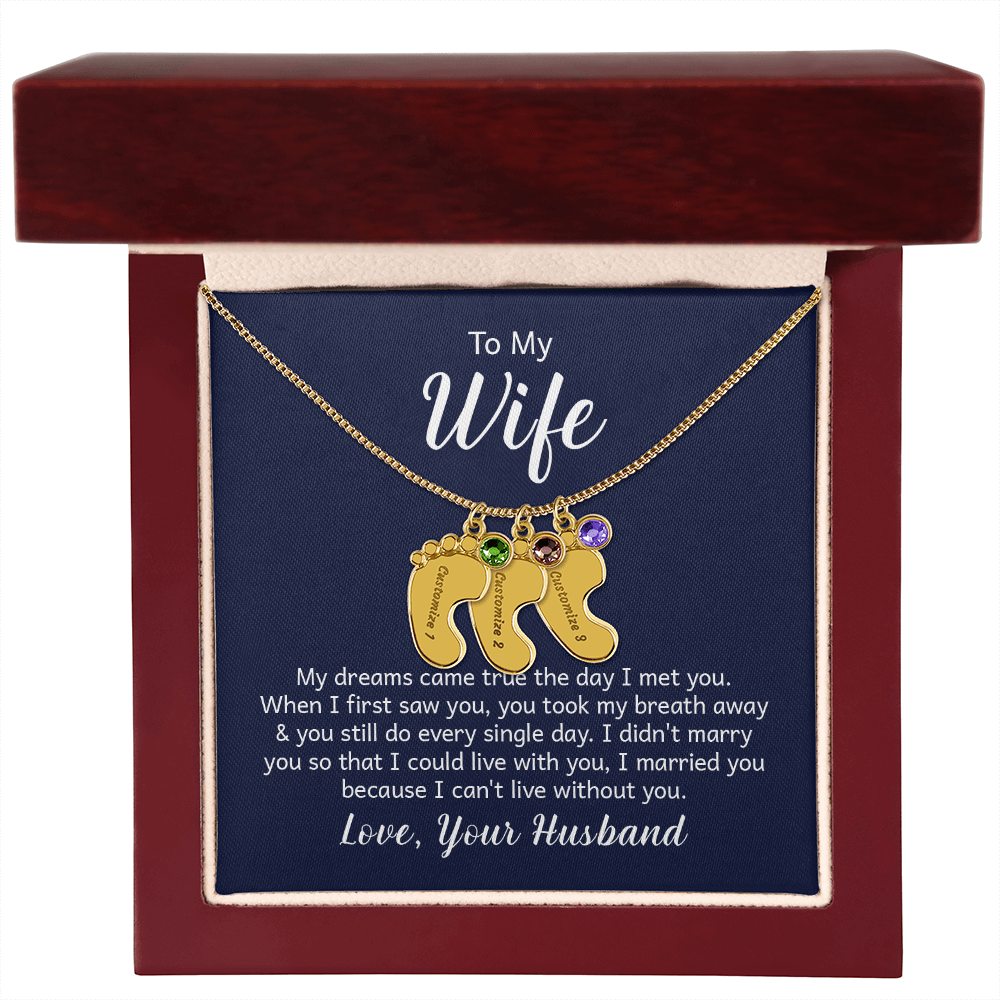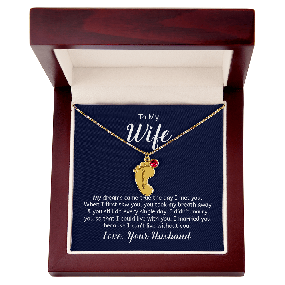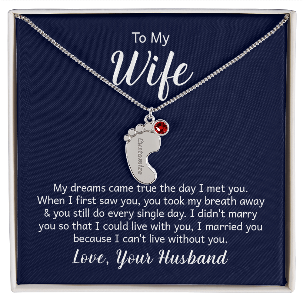 Celebrate the arrival of a newborn or cherish a precious memory with our Custom Baby Feet Necklace with Birthstone. Personalize your gift by engraving a name of your choice onto the pendant and choosing a crystal that correlates with the baby's birth month. And by picking multiple pendants, a custom present like this is perfect for moms and grandmothers with big families. This is a one-of-a-kind keepsake that will be treasured for a lifetime!