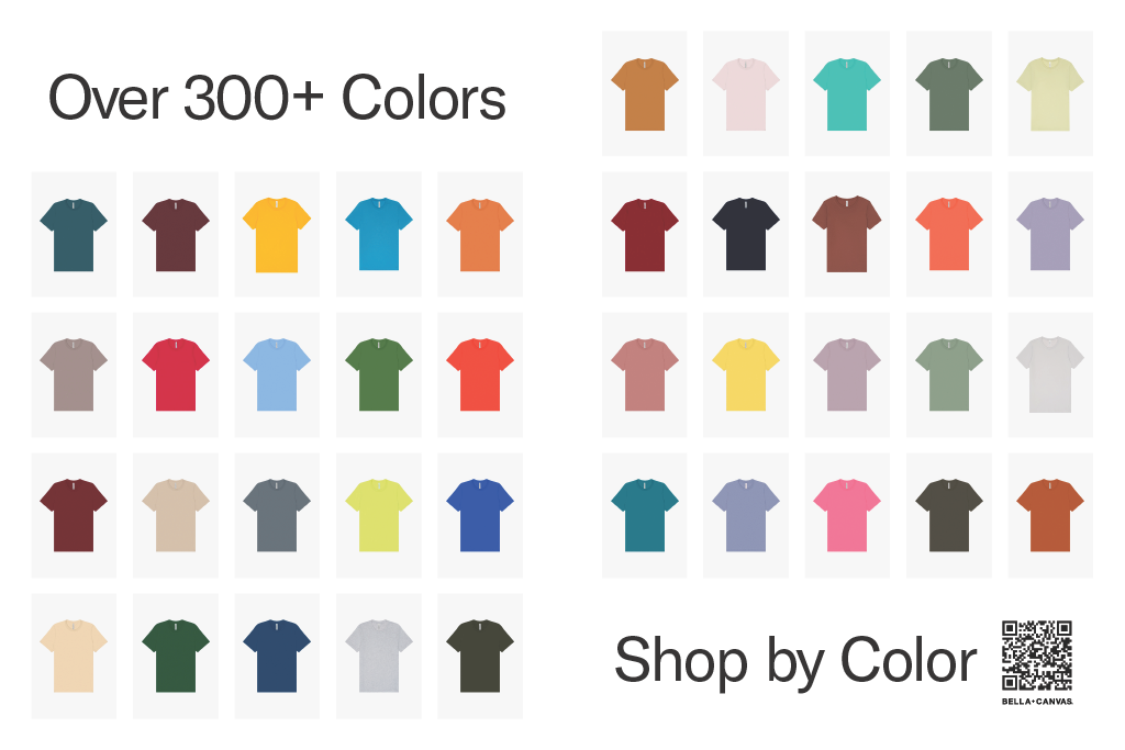 Here is the Bella+Canvas color card provided for your reference, especially useful if the shirt or bottoms you are viewing do not have an accompanying image.